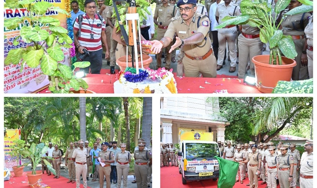 மறைந்த காவலர்களின் தியாகத்தை போற்றும் வகையில் பிரத்யேகமாக வடிவமைக்கப்பட்ட காவல் விழிப்புணர்வு வாகனத்தை கொடிஅசைத்து துவக்கி வைத்த மதுரை மாநகர காவல் ஆணையர்