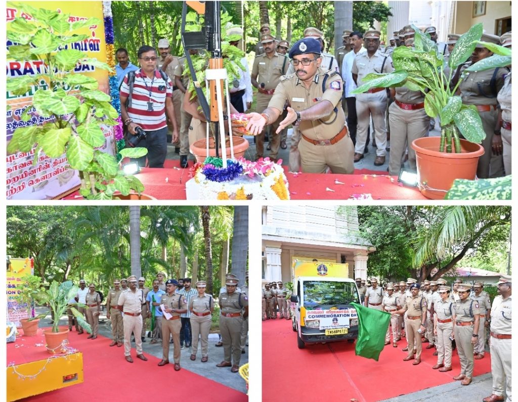 மேலும் இதன் தொடர்ச்சியாக மதுரை மாநகர காவல் ஆணையர் அலுவலகத்தில் நடைபெற்ற விழாவில் மறைந்த காவலர்களின் தியாகத்தை போற்றும் விதமாக ஒரு வாரம் காலத்திற்கு மதுரை மாநகரைச் சுற்றி வலம் வரும் காவல் விழிப்புணர்வு வாகனத்திற்கு மதுரை மாநகர காவல் ஆணையர் அவர்கள் மலர் தூவி மரியாதை செய்து கொடியசைத்து துவக்கி வைத்தார்கள்.