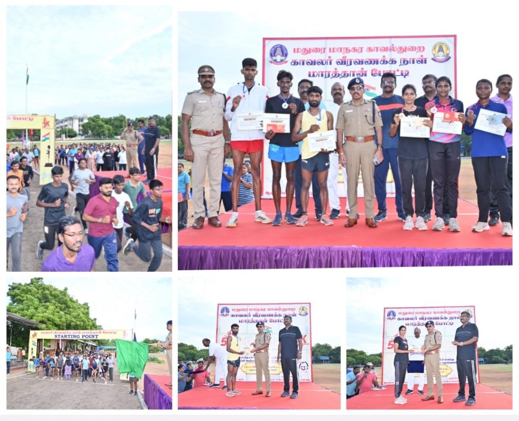 கடந்த 26.10.2025 அன்று மதுரை மாநகர் ஆயுதப்படை மைதானத்தில் பணியின் போது மறைந்த காவலர்களுக்கு மரியாதை செய்யும் விதமாக காவலர் வீரவணக்க நாள் நிகழ்ச்சிகளின் தொடர்ச்சியாக நடைபெற்றது அதில் ஆண்கள் மற்றும் பெண்களுக்கான மாரத்தான் போட்டிகளை மதுரை மாநகர காவல் ஆணையர் அவர்கள் கொடி அசைத்து துவக்கி வைத்தார்கள்.
