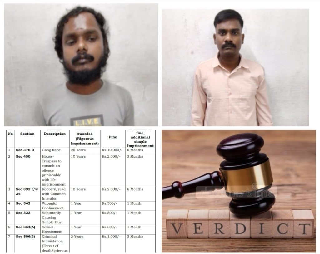 In a significant judgment delivered on 28th October, 2025, by the Hon’ble Chengalpattu Mahila Court, sentenced two accused 1) Arputharaj, A/29, and 2) Arun, A/31, residents of Purasaivakkam, Chennai-84, to undergo 20 years of Rigorous Imprisonment for committing, Gang rape and robbery of jewellery from a women.