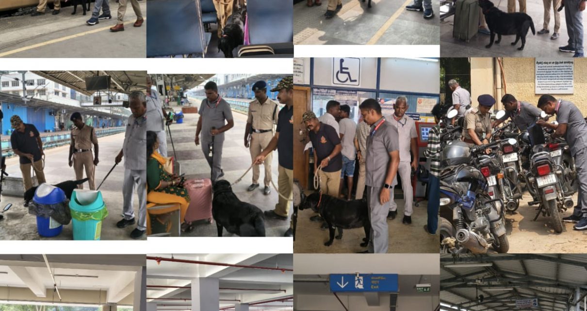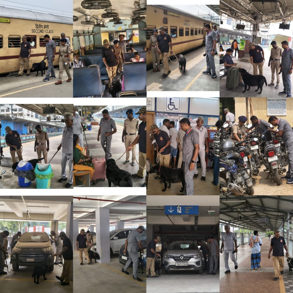 11.11.2025 அன்று, காலை 10.30 மணி முதல் மதியம் 12.30 மணி வரை, வெடிகுண்டு கண்டறியும் குழுவுடன் துணை உதவி ஆய்வாளர், ரயில்வே பாதுகாப்பு படை ஊழியர்களுடன் மற்றும் மோப்பநாய் ஆஸ்டின் ஆகியோர் மதுரை ரயில்வே நிலைய மேற்கு நுழைவு வளாகம், மேற்கு நுழைவு மல்டிலெவல் கார் பார்க்கிங் பகுதி, இரு சக்கர வாகன நிறுத்துமிடம் பகுதி, நடைமேடை கள் பகுதியில் நாசவேலை தடுப்பு சோதனை நடத்தி இரயில் எண் 16327, , 16731 மற்றும் 22671 ஆகியவற்றில் ஆய்வு செய்தனர்.