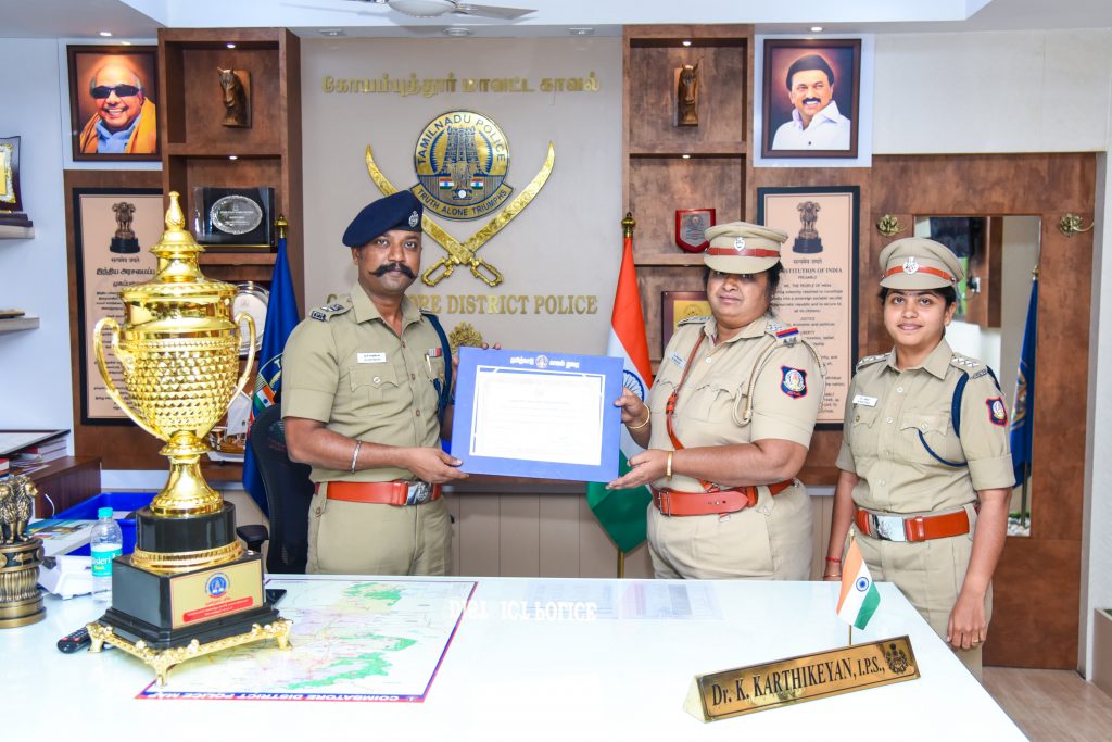 தமிழக அளவில் பொள்ளாச்சி அனைத்து மகளிர் காவல் நிலையம் மூன்றாம் இடம்பெற்றுள்ளது-கோவை மாவட்ட காவல் கண்காணிப்பாளர் அவர்கள் பாராட்டு.