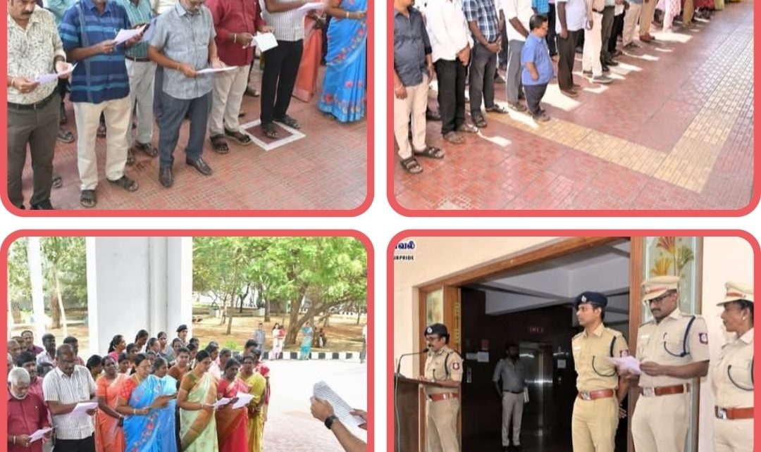 கொத்தடிமை தொழிலாளர் முறை ஒழிப்பு உறுதிமொழி ஏற்பு 09.02.2026 அன்று மதுரை மாநகர காவல் அலுவலகத்தில் மாநகர காவல் ஆணையர் முனைவர். ஜெ.லோகநாதன், இ.கா.ப., அவர்களின் தலைமையில் காவல் அதிகாரிகள் மற்றும் அமைச்சுப் பணியாளர்கள் “கொத்தடிமை தொழிலாளர் முறை ஒழிப்பு உறுதிமொழியை” எடுத்துக்கொண்டனர். இந்நிகழ்வில் காவல் துணை ஆணையர் (வடக்கு), காவல் துணை ஆணையர் (தெற்கு), காவல் துணை ஆணையர் (தலைமையிடம்), காவல் அதிகாரிகள் மற்றும் அமைச்சுப்பணியாளர்கள் கலந்து கொண்டனர்.
