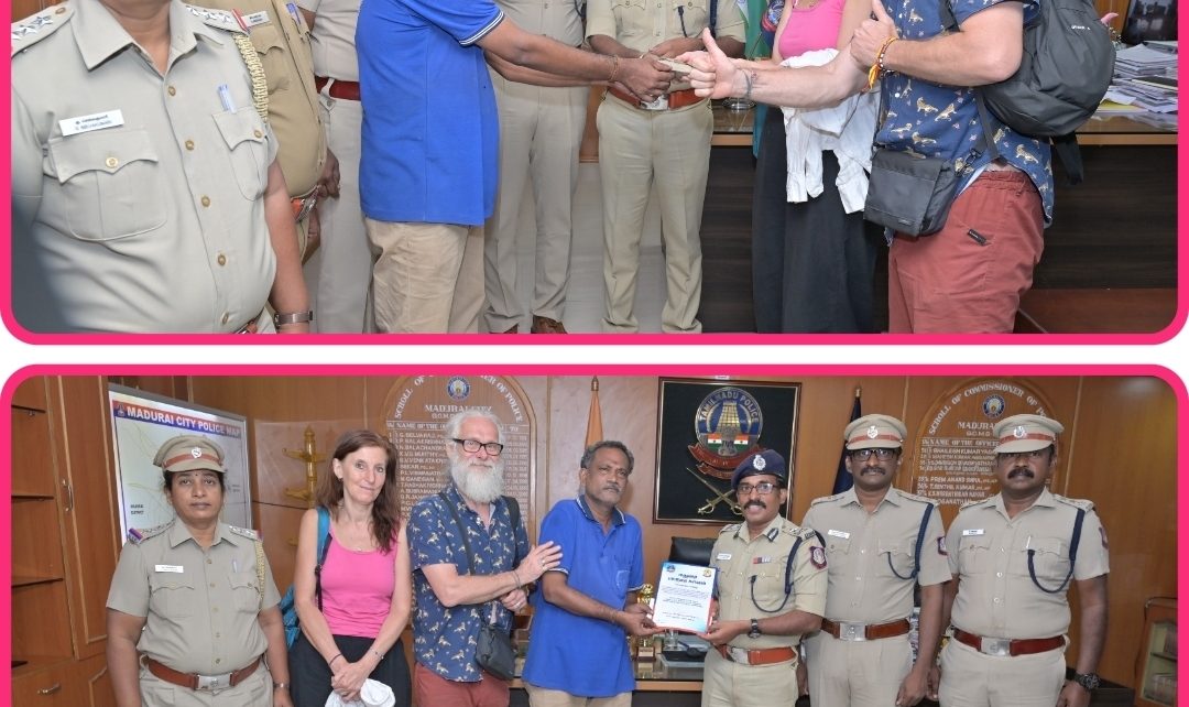 வெளிநாட்டவர்கள் தவறவிட்ட பாஸ்போர்ட்டை உரியவர்களிடம் ஒப்படைக்க உதவிய நபரை பாராட்டிய மதுரை மாநகர காவல் ஆணையர். 2026 மார்ச் மாதம் மதுரை மீனாட்சி அம்மன் கோவிலுக்கு சாமி தரிசனம் செய்ய வந்த செக் குடியரசு நாட்டைச் சேர்ந்த பாவெல் நோவக் லுயூவோகா மற்றும் அவரது மனைவி யூவேடா நோவகோவா ஆகியோர் தங்களது வெளிநாட்டு பாஸ்போர்ட்டை தவறவிட்டதாக மீனாட்சி அம்மன் கோவில் காவல் நிலையத்திற்கு தகவல் தெரிவித்த நிலையில் மதுரை வடக்காவணி மூல வீதியில் உள்ள மீனாட்சி காபி […]