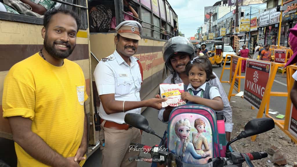 11.10.25..மதுரை மாநகர். காளவாசல் பகுதியில்… போக்குவரத்து விதிகளை முறையாக பின்பற்றி, தலைக்கவசம், சீட் பெல்ட், அணிந்து வந்த வாகன ஓட்டிகளை ஊக்குவிக்கும் வகையில்… அவர்களுக்கு மதுரை மாநகர் காவல் துறையுடன் சூரியன் FM இணைந்து ..இனிப்புகள் வழங்கினர்..
