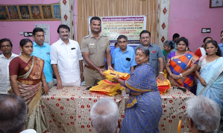 தனியார் தொண்டு நிறுவனம் சார்பில் நலிந்த வர்களுக்கு தீபாவளி வஸ்திரதானம் வழங்கிய மதுரை மாநகர் தெற்குவாசல் காவல் ஆய்வாளர் 05-10-2025 இன்று நடைபெற்ற நலிந்தவர்களுக்கு தீபாவளி வஸ்திர தானம் நிகழ்ச்சி பேரவைத் தலைவர் O.V.R.M. ராஜ்குமார் தலைமையில் நடைபெற்றது. தெற்குவாசல் காவல் நிலைய ஆய்வாளர் திரு. R. வெங்கடேஷ் அவர்கள் துவக்கி வைத்தார். முன்னாள் MLA S.S. சரவணன், A.R. மஹாலெட்சுமி, துணைவட்டாட்சியர் O.S. வெங்கடேஷ், ,நிலையூர் ஊராட்சி மன்ற முன்னாள் தலைவர் K.K. பானுமதி, பேரவை துணைத்தலைவர் R.M. சர்மிளா மற்றும் பொதுச்செயலாளர் S.R. குமார், பொருளாளர் S.S. பாலகுமார், M.R. ஹரிந்திரன் பேரவை துணைச் செயலாளர் R.M. ஓம்குமார், ஹரிகீஸ்டு, ஆகியோர் உடனிருந்தனர்.